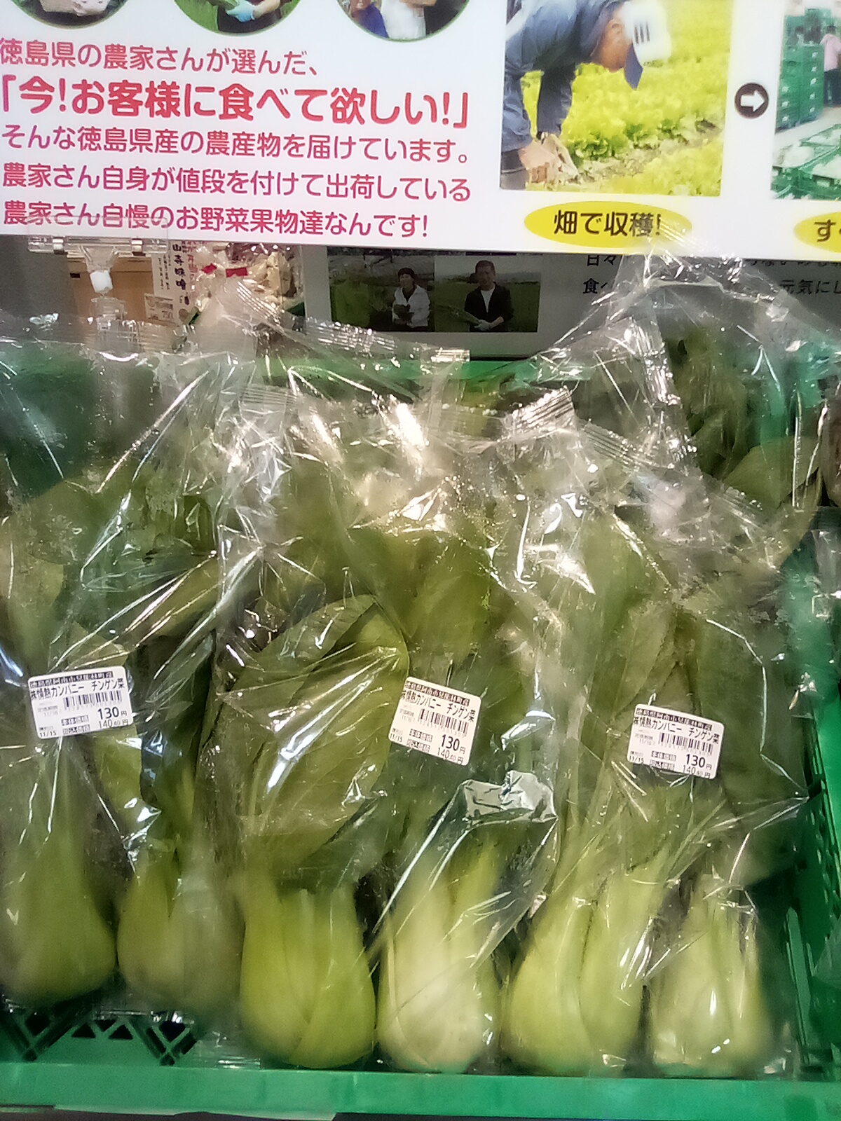 本日のオススメはチンゲンサイです。炒め物や八宝菜などに最適です。