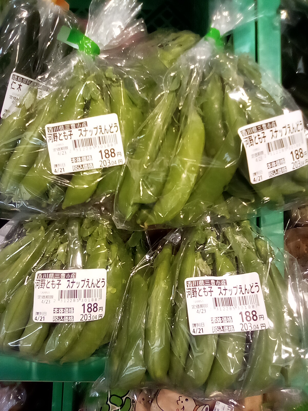 本日すきとくコーナーのオススメ商品は香川県三豊市の河野とも子さんのスナップえんどうです!今が旬はスナップえんどう。サッと湯がいてサラダ、パスタなどにいかがでしょうか。是非この機会にお試しくださいませ。