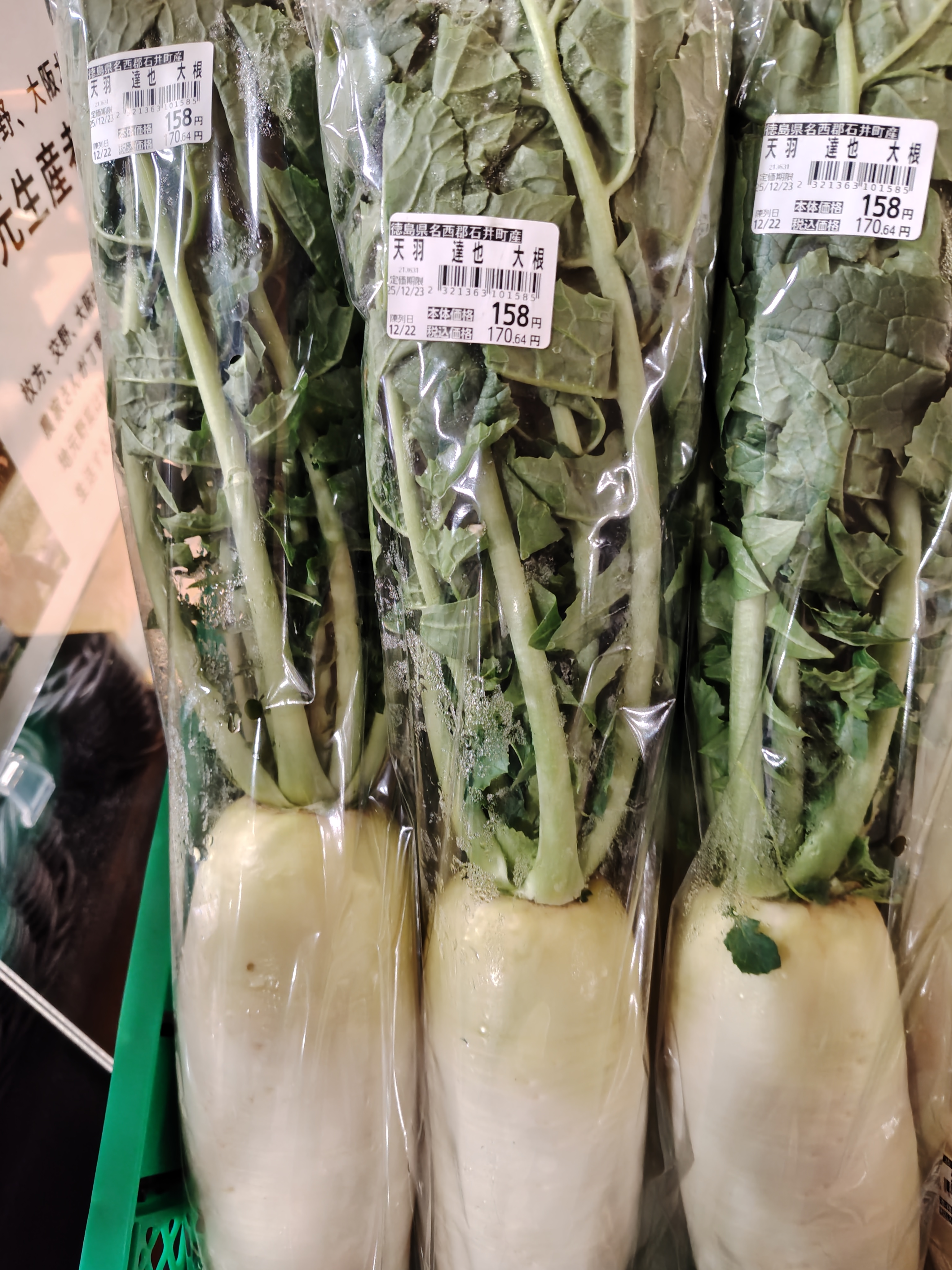 大きくきれいな葉っぱの付いた大根です。今の時期しかない葉付きです。