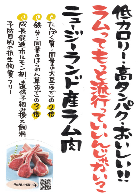 トップワールド香里園店・楠葉店・香里ケ丘店の3店舗限定でラム肉の販売を行います。