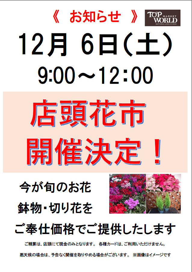 トップワールド富田店にて12月6日(土) 9:00~12:00