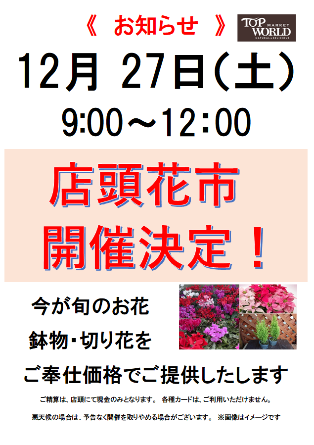 トップワールド富田店にて12月27日(土) 9:00~12:00