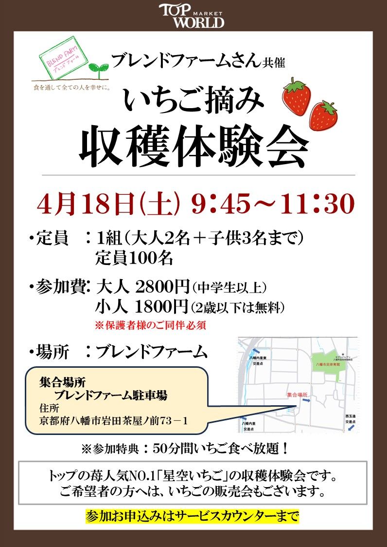 【ブレンドファームさん】いちご摘み収穫体験会 実施します!